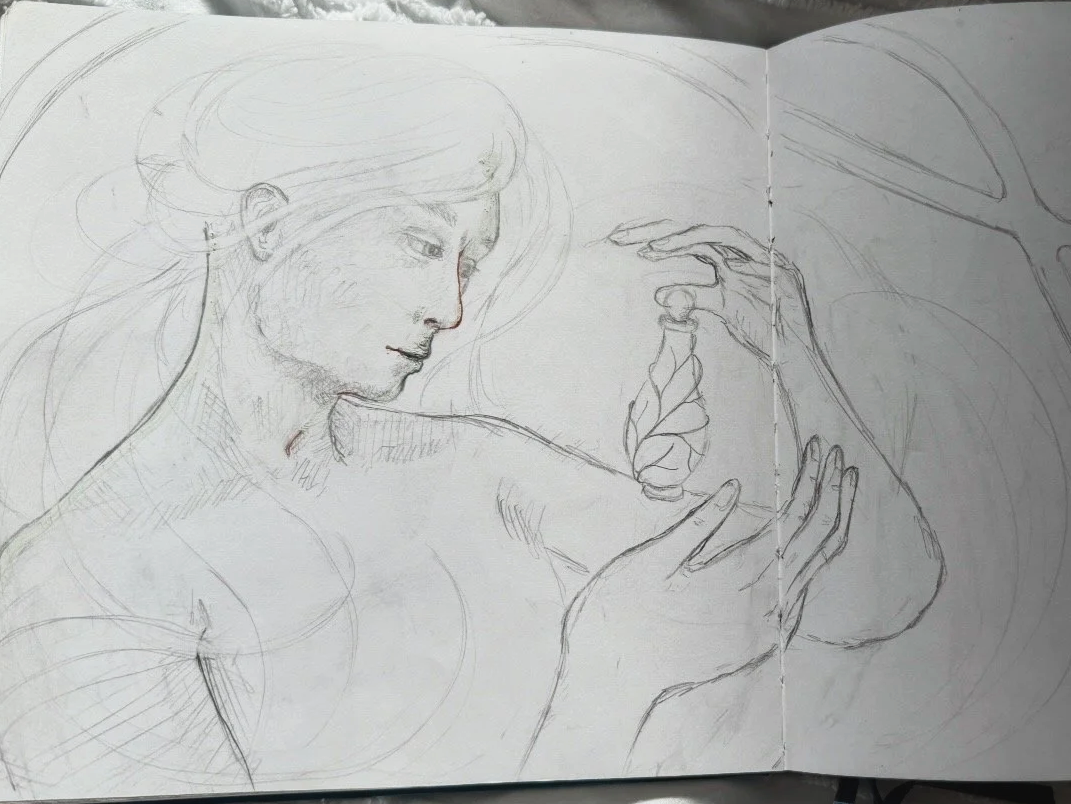 If you look closely at the final version, it is a journey. I put together the different chapters of Psyche’s odyssey, the impossible trials, the desperate rescue by Cupid, and the ultimate triumph of receiving the ambrosia.